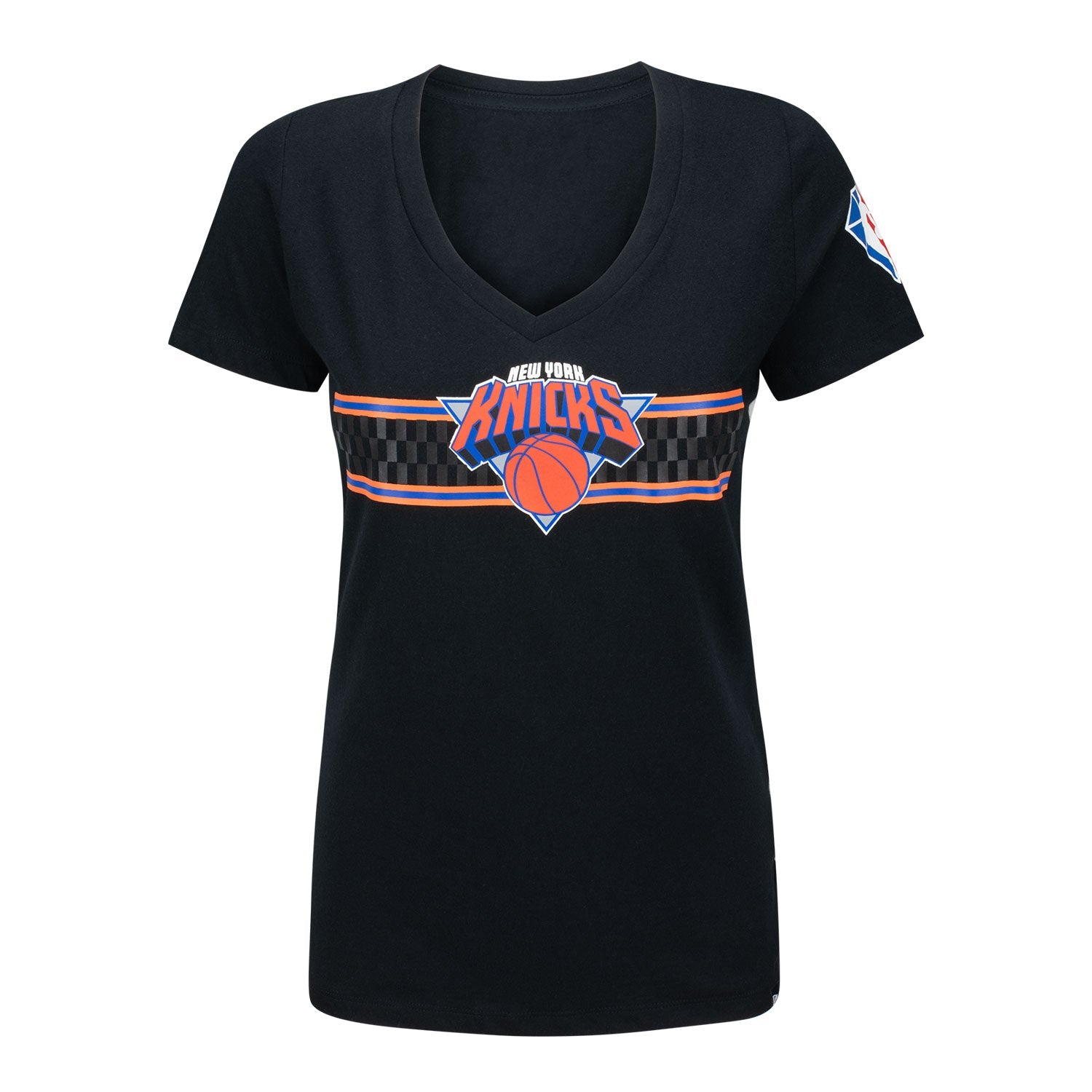 Rep the Knicks in standout style with the New Era City Edition Ladies V-Neck Tee. Featuring a bold throwback logo and sleek checkered detailing, this fitted tee brings modern flair to a vintage-inspired design—perfect for game days or everyday wear.