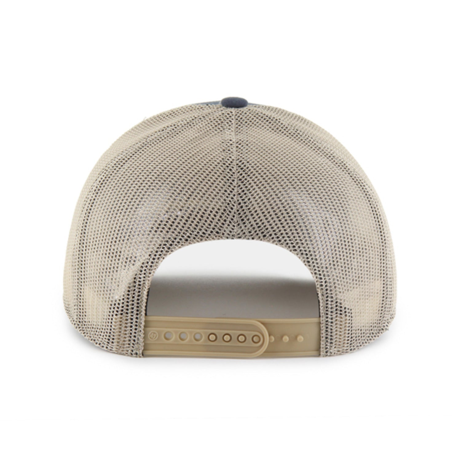The '47 Brand Knicks Trundle Trucker offers a rugged, vintage-inspired look with a leather patch logo on a structured front panel. Featuring a breathable mesh back and an adjustable snapback closure, this cap delivers all-day comfort and classic Knicks pride.