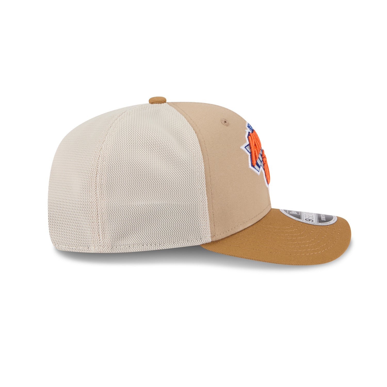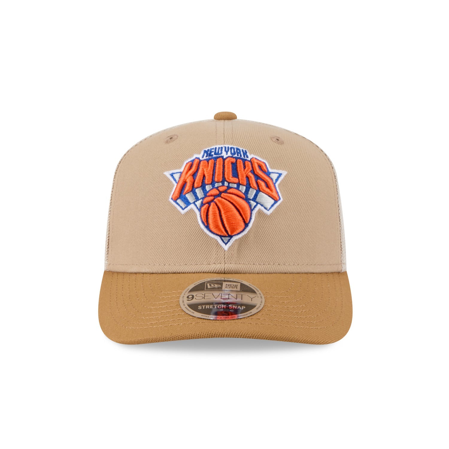 The New Era Knicks 2-Tone Trucker 9FIFTY Stretch Snapback in Stone combines a neutral stone crown with a contrasting team-colored visor, offering a clean and modern look. Crafted with a structured high-profile fit, it features breathable mesh side and rear panels for comfort and ventilation. The front showcases an embroidered Knicks logo, while the adjustable snapback closure ensures a customizable fit. This cap is an ideal choice for fans seeking a versatile and stylish way to represent their team.