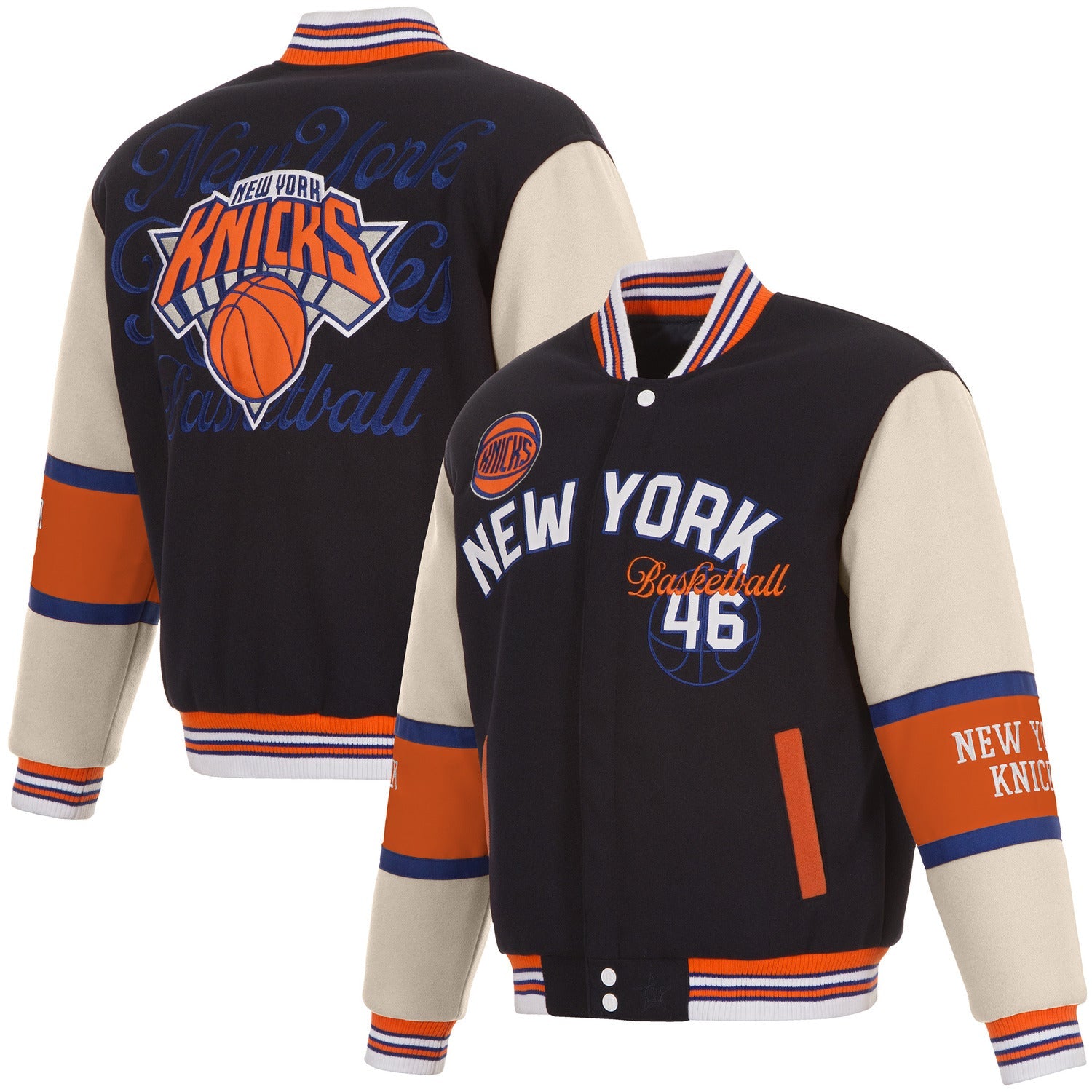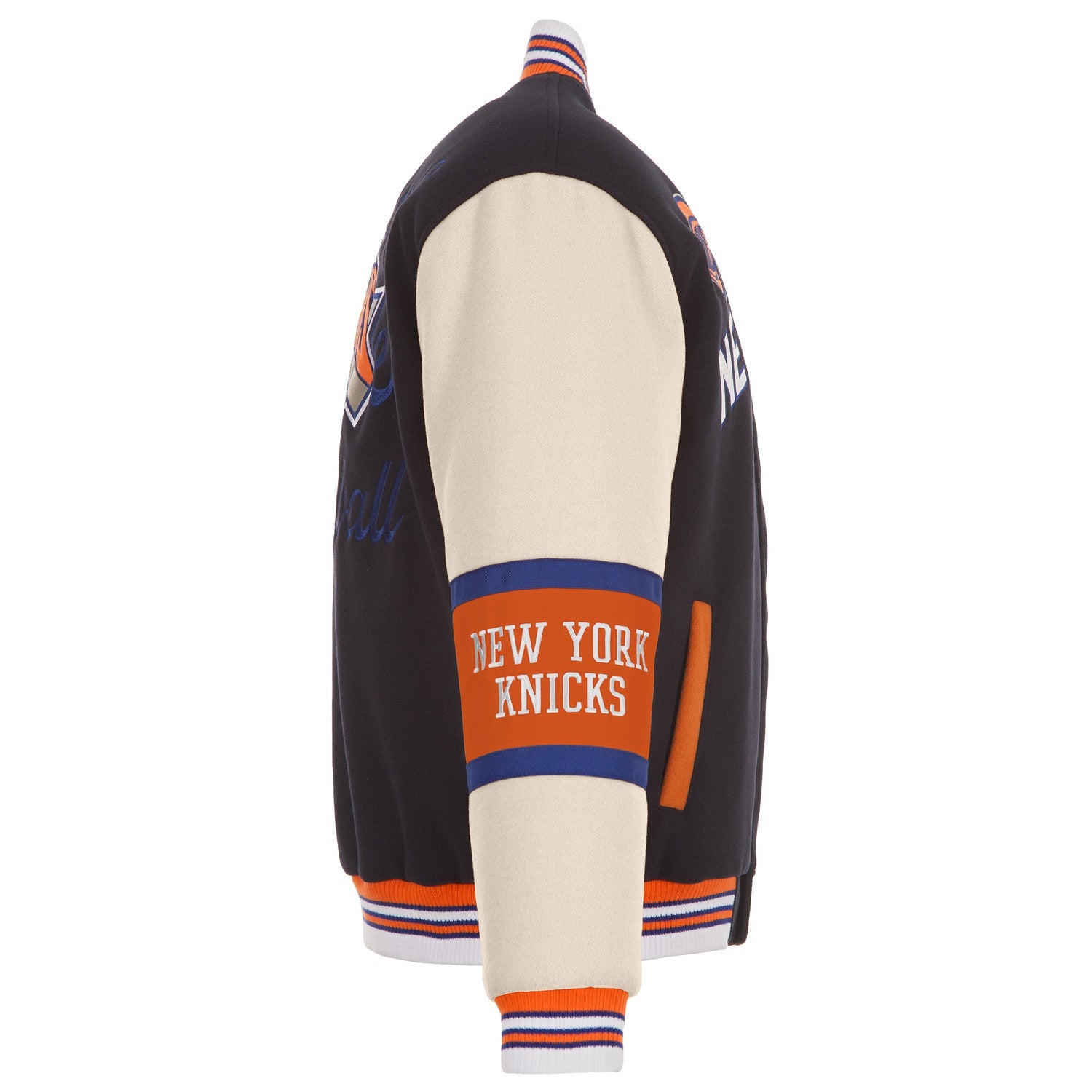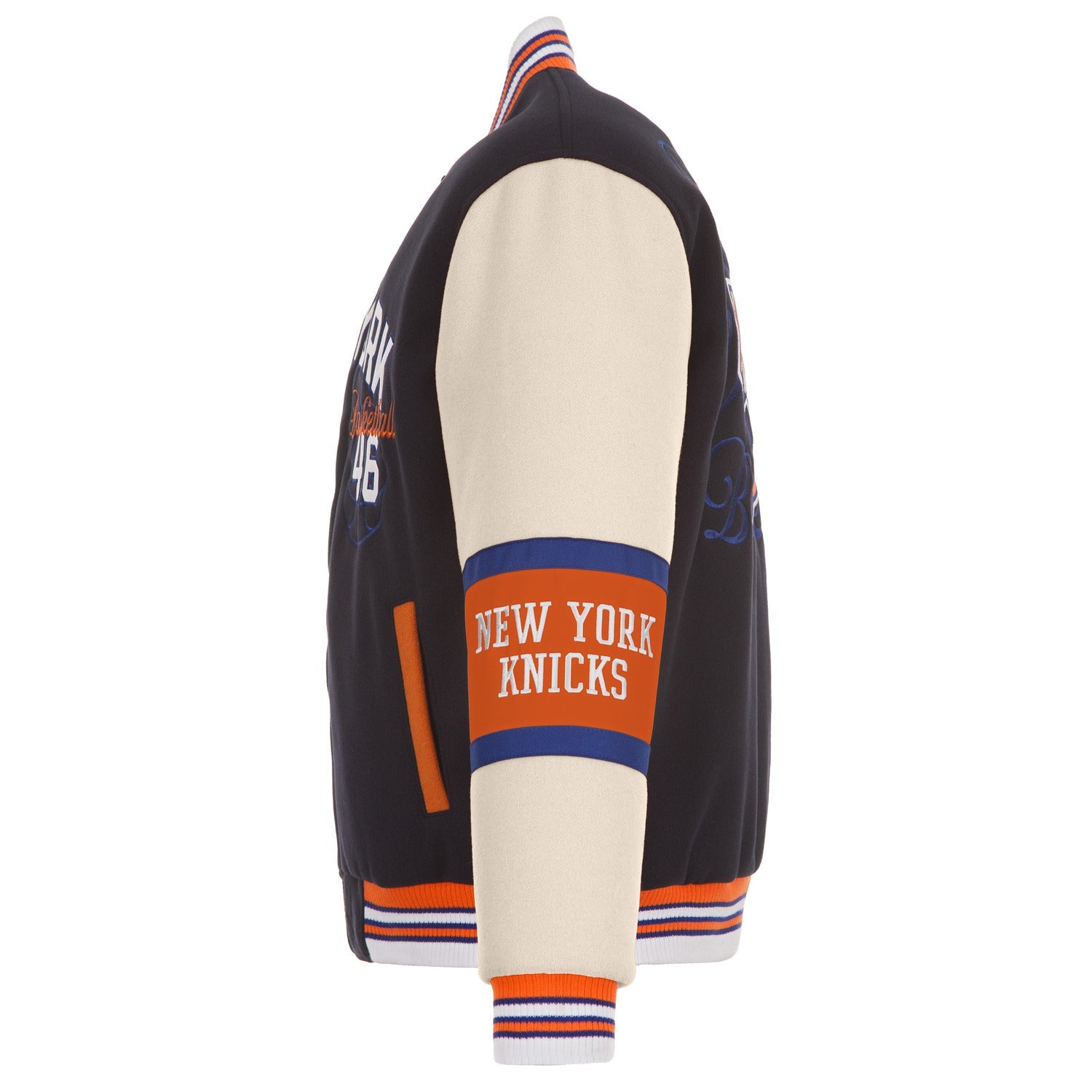 JH Design Knicks Two Tone Wool Reversible Navy/Cream Varsity Jacket