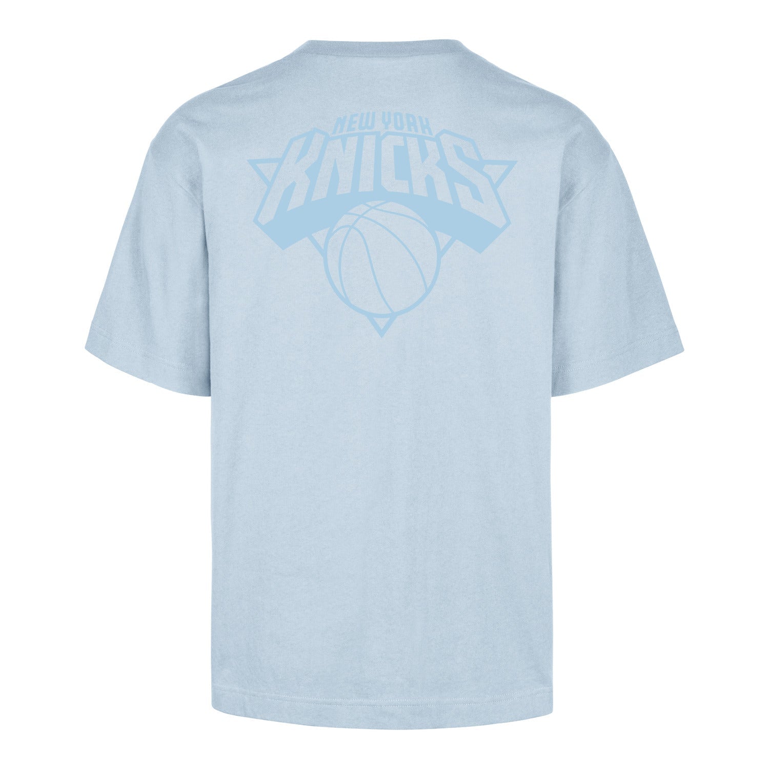 Show your Knicks pride with the '47 Brand Knicks Ice Cap Postered Foundation Tee. Featuring a subtle "New York" graphic on the front and a bold tonal Knicks logo across the back, this tee blends comfort with classic team spirit. Contrasting collar and sleeve trim add a vintage-inspired edge.